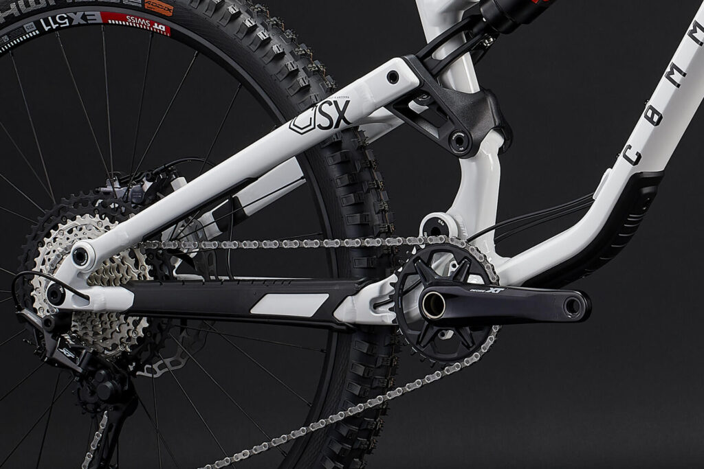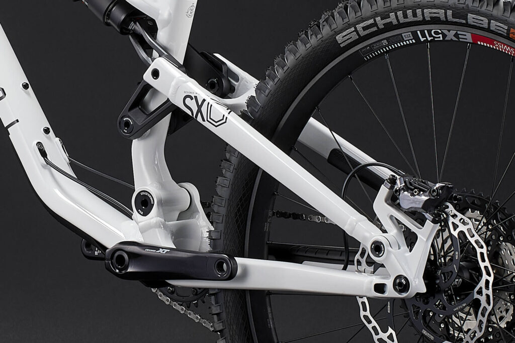 Задний треугольник META SX V4 стал жестче за счет добавления перемычки между верхними перьями для лучшего контроля и точности в управлении. Нижние перья удлинены для равномерного распределения нагрузки между передней и задней осью. Их длина варьируется в зависимости от размера велосипеда.