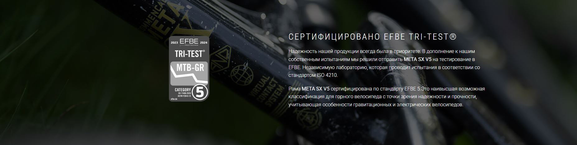 Благодаря разноразмерным колесам 29/27.5 дюймов, META SX V5 демонстрирует повышенную устойчивость на спусках, более эффективное торможение и отличную динамику в поворотах.